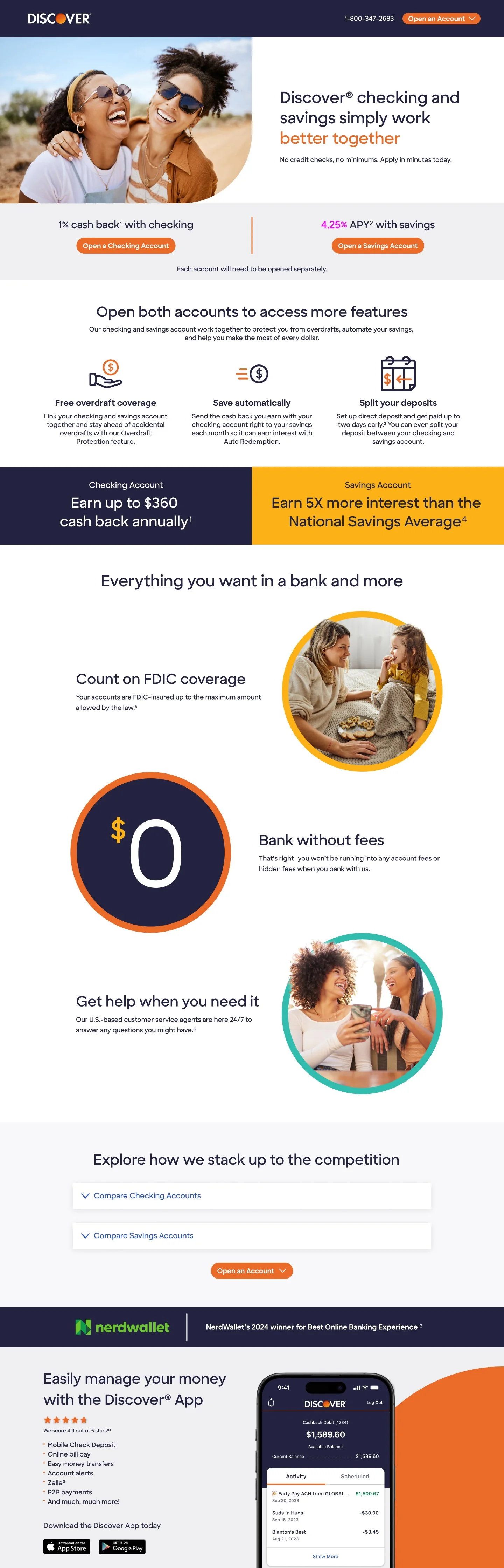 This insight was the core idea of our joint checking & savings campaign, and we were tasked with creating a landing page that paid this off while showcasing everything (and I mean everything) that these two accounts have to offer.